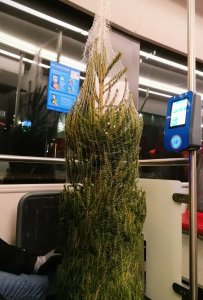 Tänään lähdimme perinteisen iltapäiväkahvin jälkeen, autottomia kun ollaan, lähijunalla kuusenhakumatkalle. Reissu meni mukavasti ja paluumatkalla keräsimme muutamia huvittuneita katseita kanssamatkustajilta.