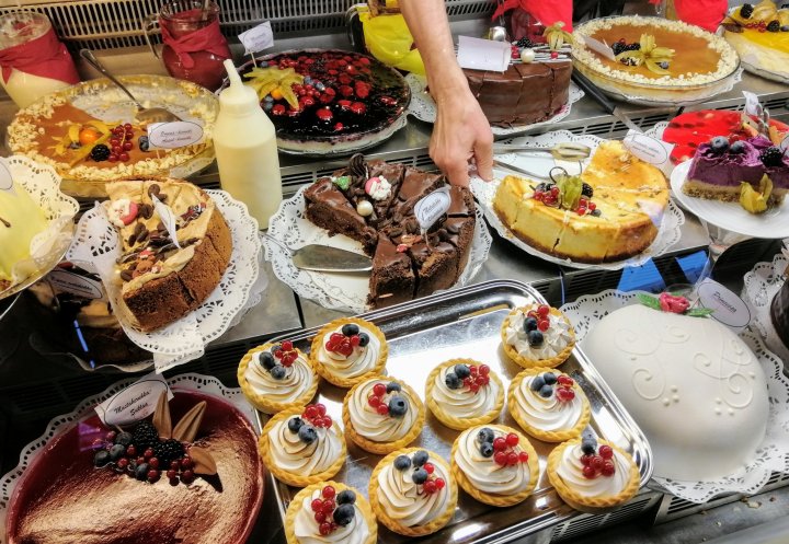 Päiväkahvit joimme tunnelmallisessa Cafe Cabriolessa, jonka tiski notkui toinen toistaan herkullisemman näköisiä kakkuja.