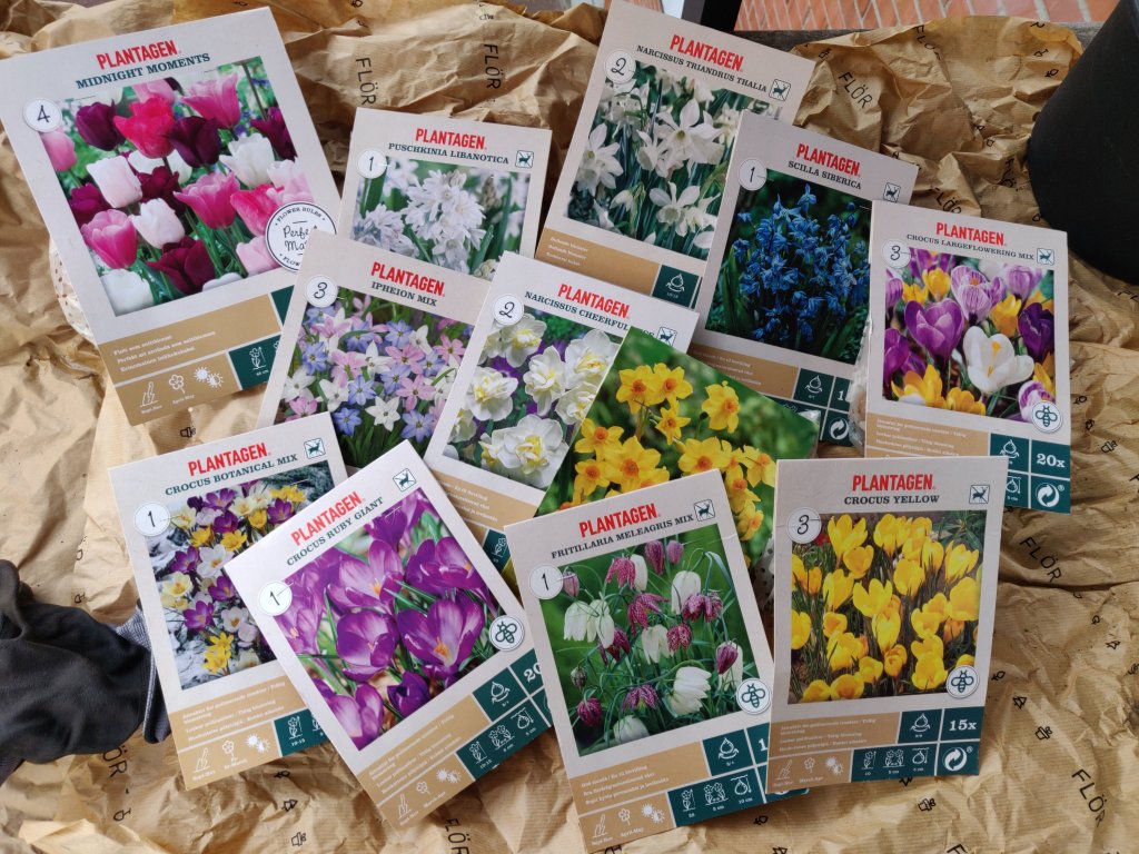 Kauppakeskusreissulla Kampissa satuttiin kulkemaan Plantagenin ohi, ja silmä osui siellä juuri purettuun kukkasipulikuormaan. Mukaan lähti tulppaaneita, narsisseja, krookuksia, pikarililjoja ja muita kaunokaisia, sekä jalostettuja puutarhalajeja että ns. kasvitieteellisiä lajeja, joita yhä voi tavata jossain päin maailmaa kasvien luontaisilla kasvupaikoilla.