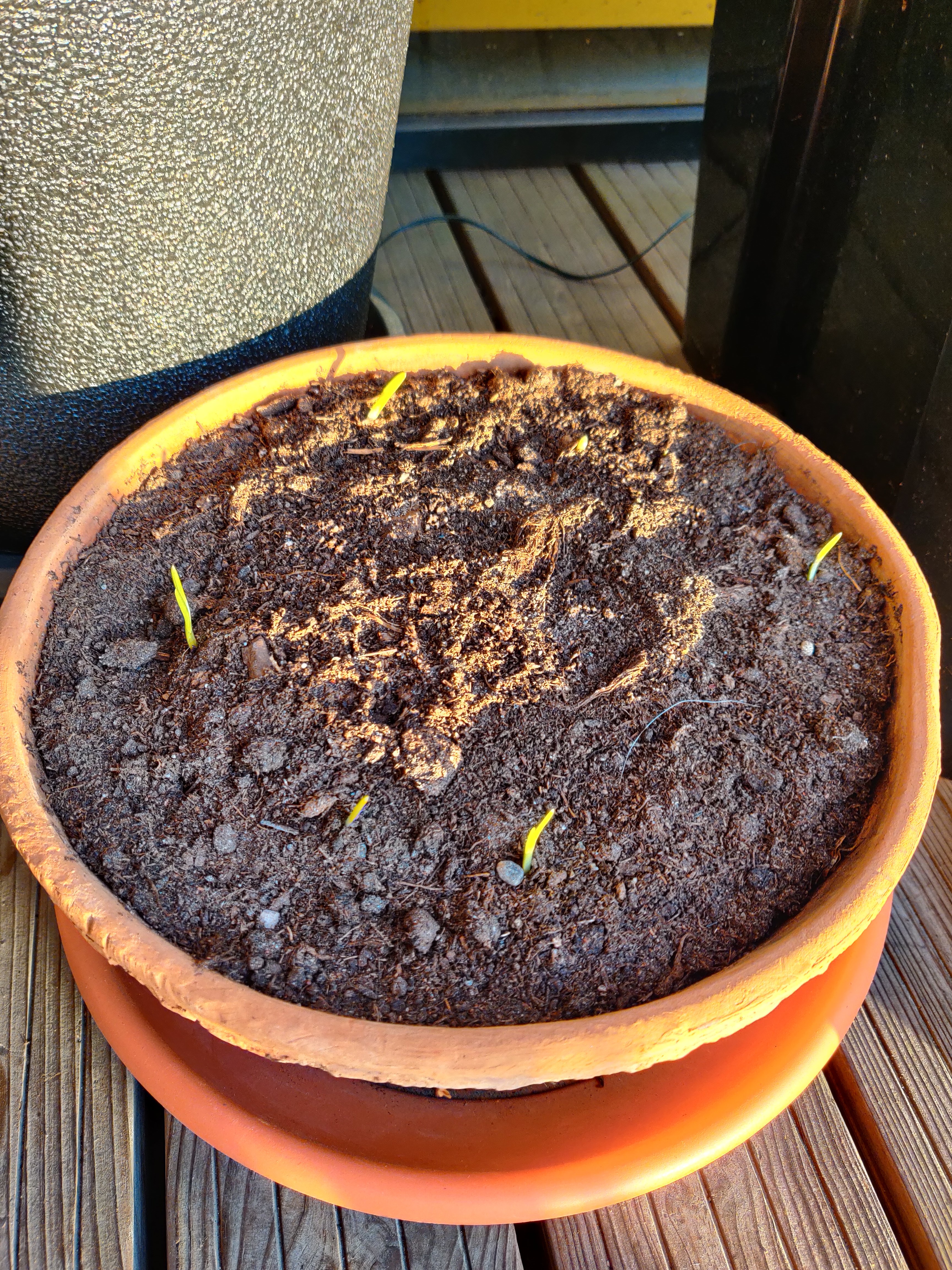 Ilmeisesti ei ihan väärin mennyt istuttamisen kanssa, kun osa jo ehti ensimmäiset lehdet kasvattaa. Ehkäpä ovat lumikelloja, jotka ensimmäisenä lumen alta jo pilkistävät.