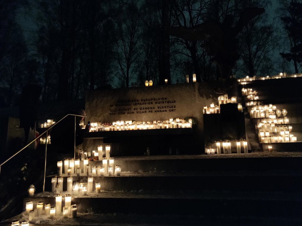 Hietaniemen hautausmaa on perinteisesti ollut monelle yksi joulun ajan visiittipaikoista. Pyhäinpäivänä ruuhkaa riitti, joten otettiin varaslähtö ja käytiin hautausmaalla jo aatonaattona. Muualle haudattujen muistomerkillä ei ollut tunkua, ja omat kynttilät saatiin hyvin asetettua valaisemaan iltaa.