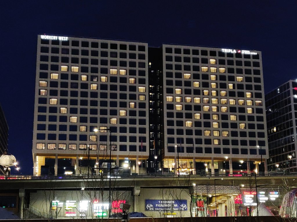 Päivänäöllä ohjelmassa ulkoilua ja retki vei ohi Triplan kauppakeskuksen, jossa hauskasti valot jätetty osaan huoneita, jolloin kauas näkyvät sydän ja lumihiutale.