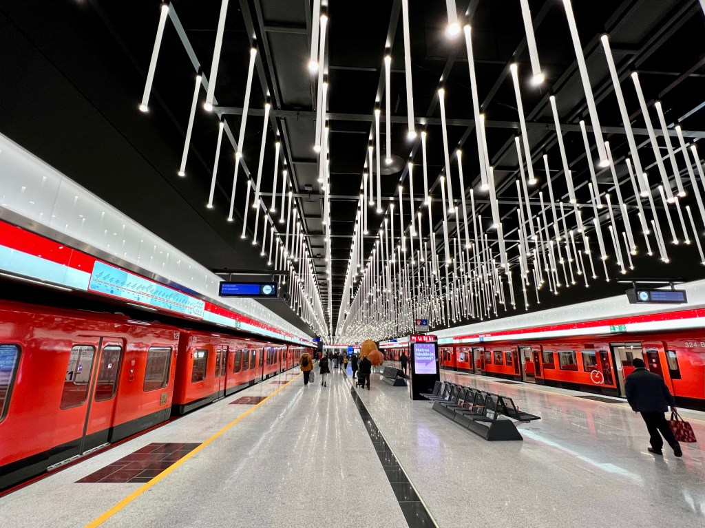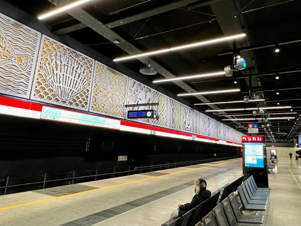 Voi sanoa ettemme olleet ainoat. Muillakin kanssamatkustajilla vaikutti olleen samoja suunnitelmia keskustelusta päätellen. Ja miksipä ei, kun vasta edellisenä päivänä tällä laajennusosalla metrot alkoivat liikennöidä. Metron ikkunan takaa muutamaa asemaa ihailtiin ja parilla pysähdyttiin mennen tullen.