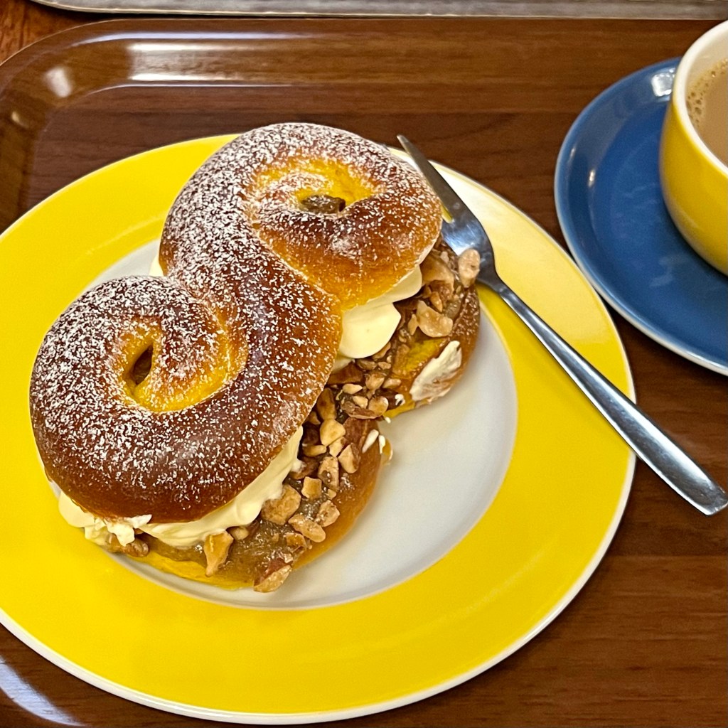 Päiväkävelyllä poikettiin Ritorno konditoriaan kahville, ja siellä yllätykseksemme löytyi jotain normaalista poikkeavaa: todella herkullisia luciapullan ja laskiaispullan yhdistelmiä, lussesemloja. Niissä luciapullan sisään on täytteeksi laitettu mantelimassaa, jonka päälle ripoteltu paahdettuja manteleita ja siihen vielä kermavaahtoa till. Kyllä vei kielen mennessään ja pakkaspäivänä tämä mukavasti piristi.