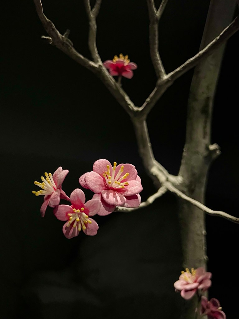 Kirsikkapuulla on erityinen merkitys japanilaisessa kulttuurissa – elämänkierto punoutuu kirsikkapuiden vuodenkiertoon. Vuoden tärkein juhla on hanami, kukkien katseleminen, joka ajoittuu kirsikkapuiden kukinnan alkamiseen. Kirsikkapuut ovat läsnä monissa kuva-aiheissa: viehkeät naishahmot kulkevat kirsikkapuiden alla ja kabuki-teatterin roolihahmojen taustalla kiertyvät kirsikkapuiden koristeelliset muodot. Puupiirrosten maailman kautta pääsemme kirsikkapuiden äärelle.”