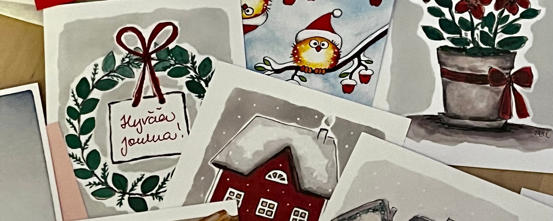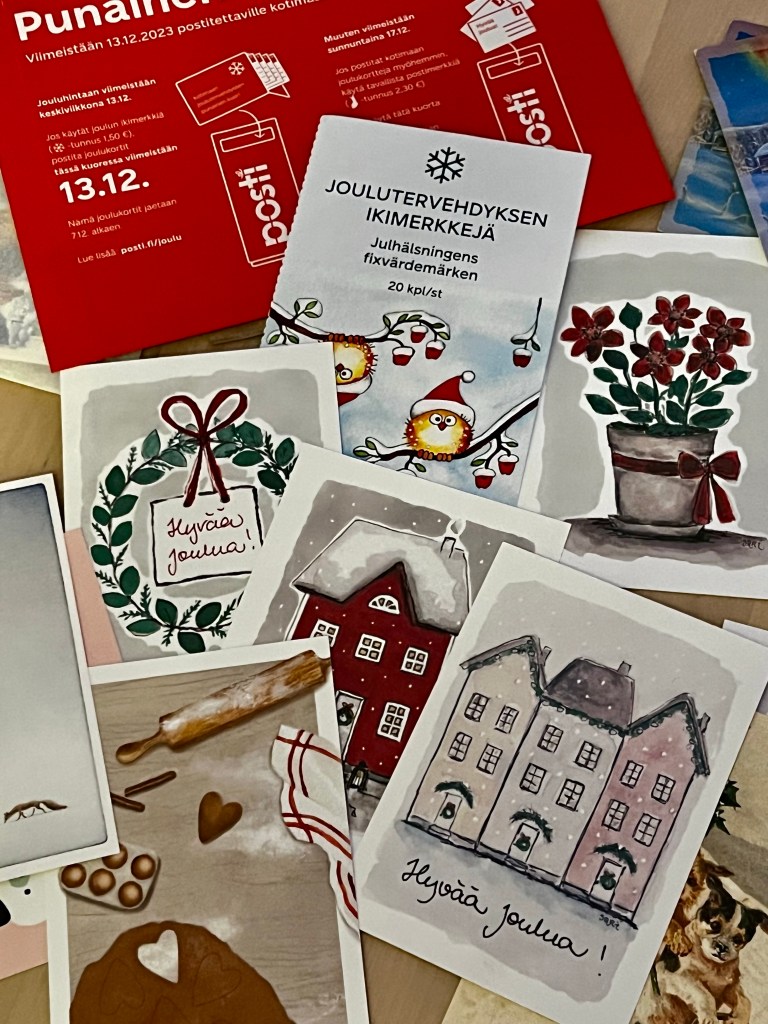 Aikaahan siis vielä on, mutta yleensä se takaraja tulee sitten yllättävän nopeasti vastaan. Tänään siis kirjoittamaan ne muutamat kortit, jotka vielä meiltä ystäville ja sukulaisille lähtevät.
