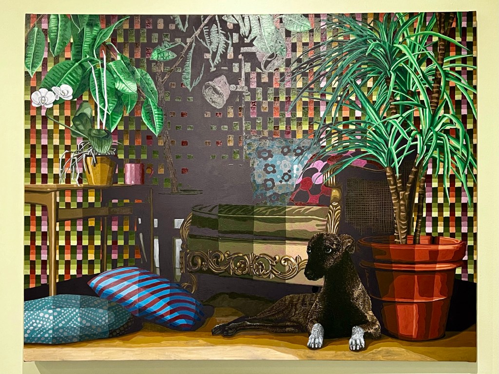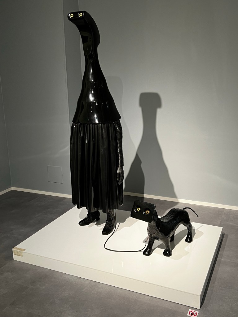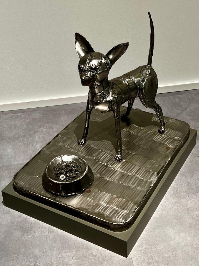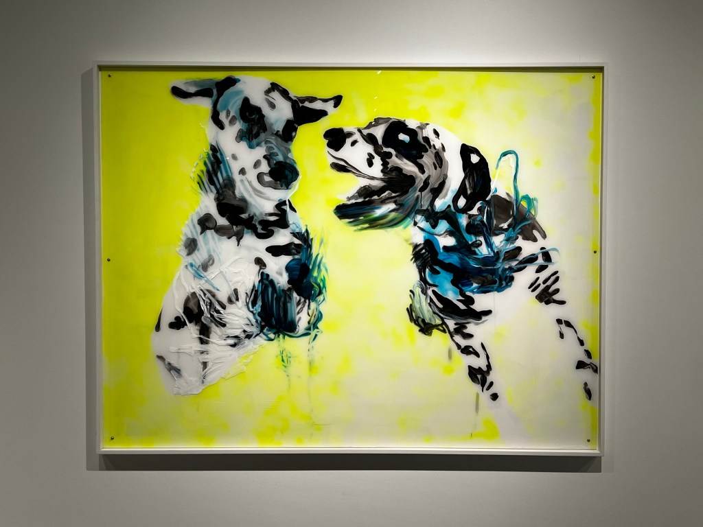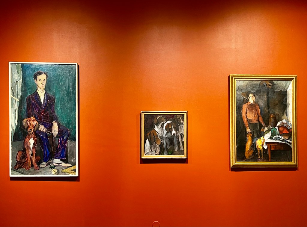 Näyttelyssä on useita koiria maalauksissa, valokuvissa, patsaina. Monessa työssä koiria on mukana, mutta niihin ei samalla tavalla ehkä kiinnitä huomiota, kun aihepiiri ei suoraan ole koira. Tämä näyttely sen sijaan korostaa koiraa ja sen eri rooleja kuvataiteessa viimeisen 150 vuoden aikana.