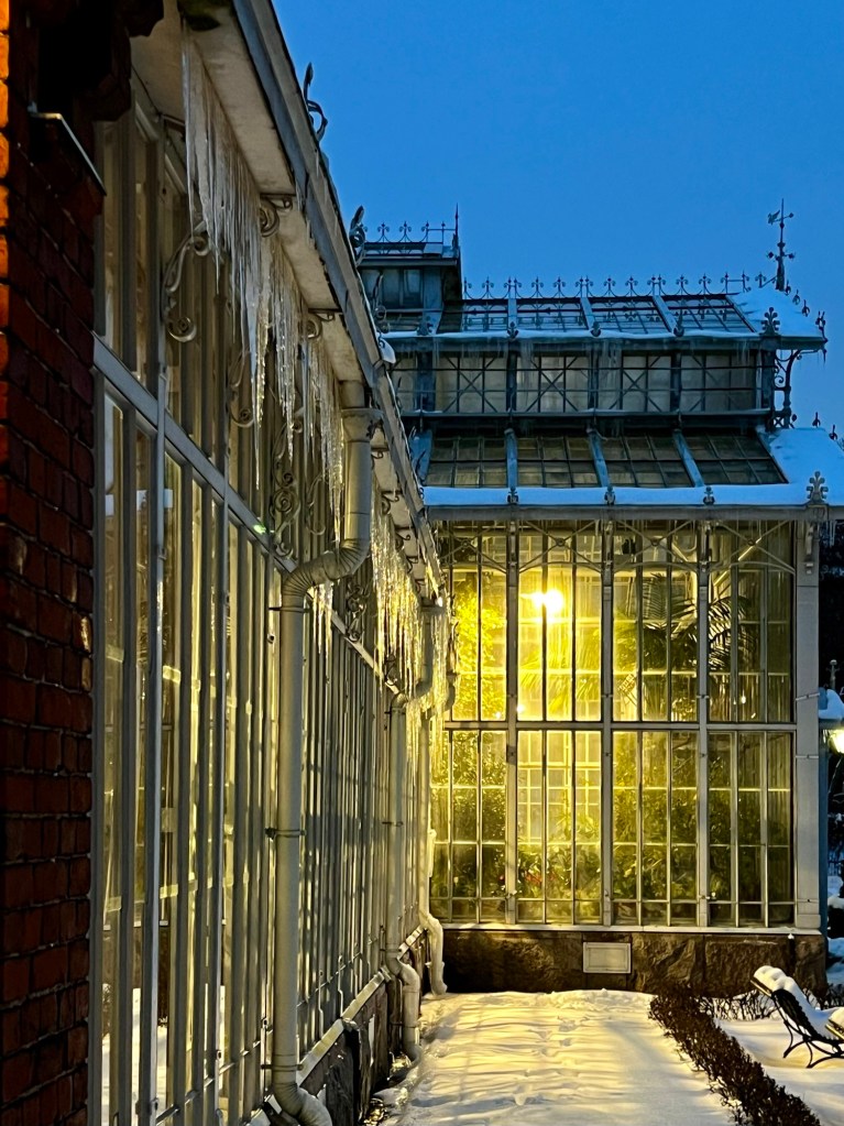 Aiemminkin ollaan Talvipuutarhasta kerrottu. Se on Töölönlahden pohjoispäässä sijaitseva vanha, vuonna 1893 avattu, upea kasvihuone, jossa elävät huonekasveinakin tutut ja vähän harvinaisemmat kasvit sulassa sovussa. Näin joulun aikaan kasvihuoneet ovat saaneet jouluisan ilmeen. Ihmeteltävää riittää niin perheen pienimmille kuin isovanhemmillekin.