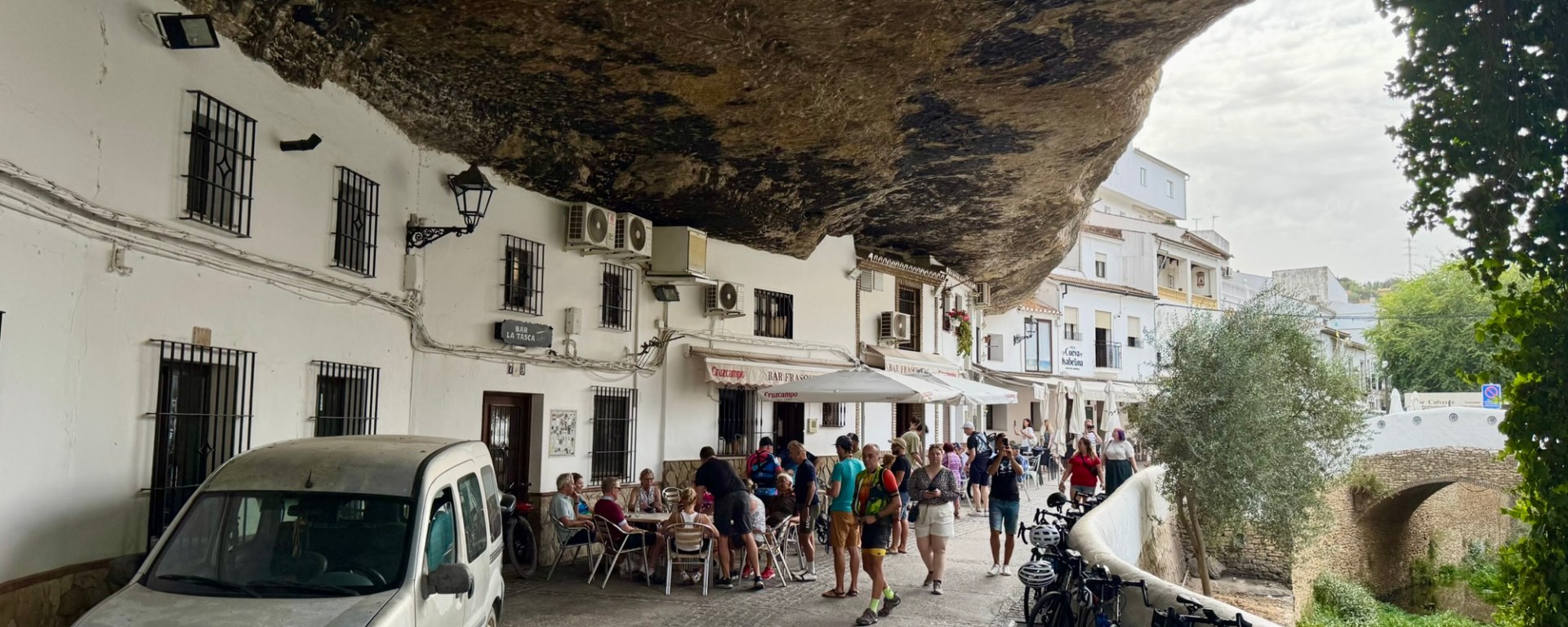 Setenil de las Bodegas on kylä Andalusiassa Espanjassa. Bodega tarkoittaa viinitilaa ja kylän nimi juontaakin juurensa alueella aiemmin kukoistaneista viinitiloista. Pikkukylässä on asukkaita muutama tuhat, mutta turisteja täällä riittää. Jaa miksi? No ehkä siksi, että täällä on perin kummallista rakennusarkkitehtuuria.