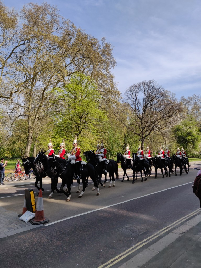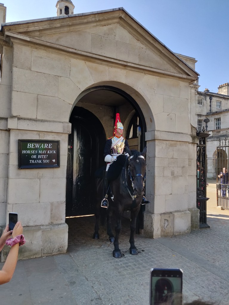 Horse Guards -rakennuksen virallista sisäänkäyntiä mm Buckinghamin palatsiin vartioivat kuninkaallisen henkivartioston sotilaat päivittäin klo 10.00–16.00.