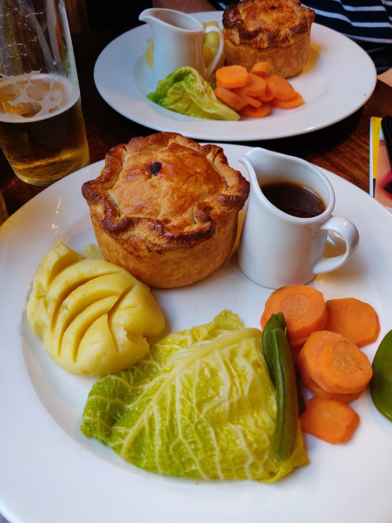 Jos iskee jano ja/tai nälkä, niin aina voi ottaa oluen ja vaikka paimenpojan piiraan public housessa, joita täälläkin riittää.