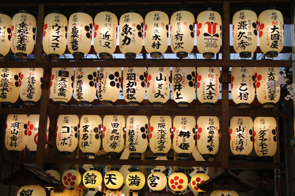 Kioton kaupungissa on tunnelmaa. Kapeita kujia vanhan kaupungin alueella. Lukuisia puoteja ja ravintoloita.