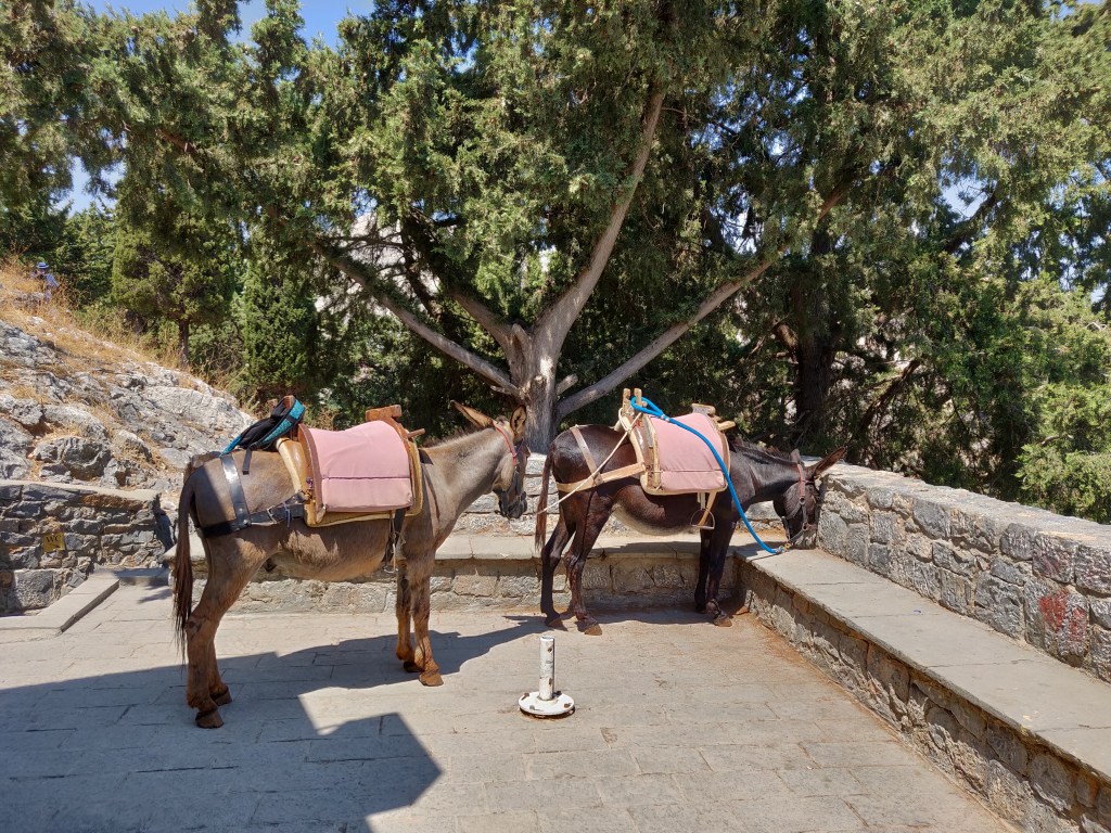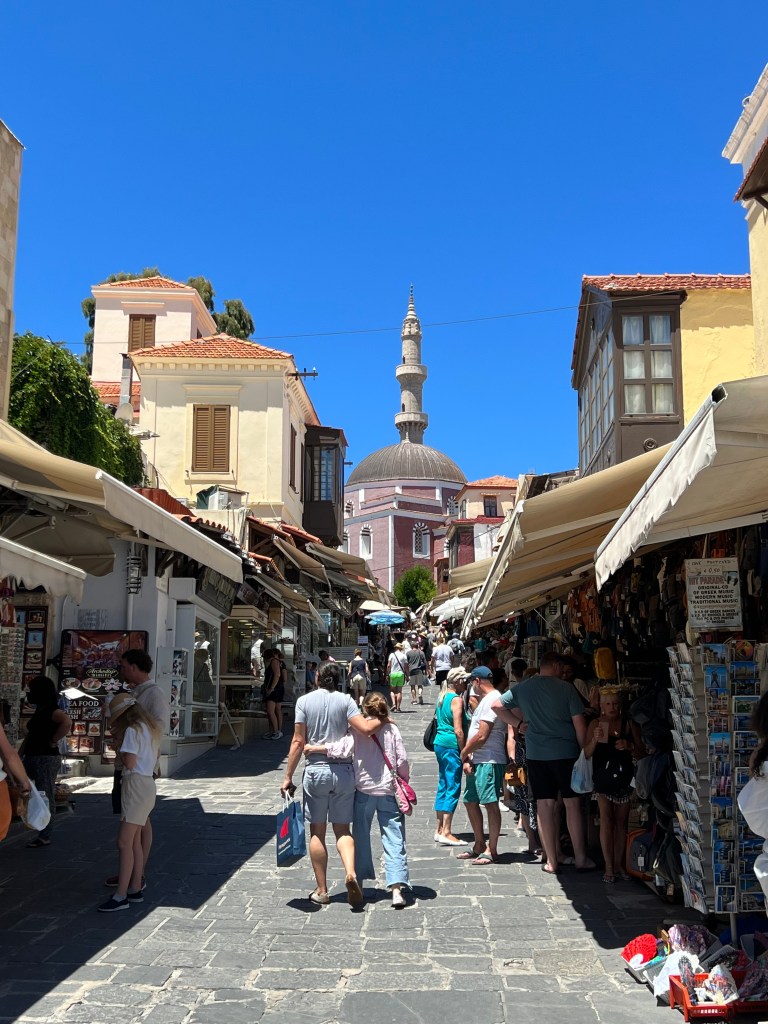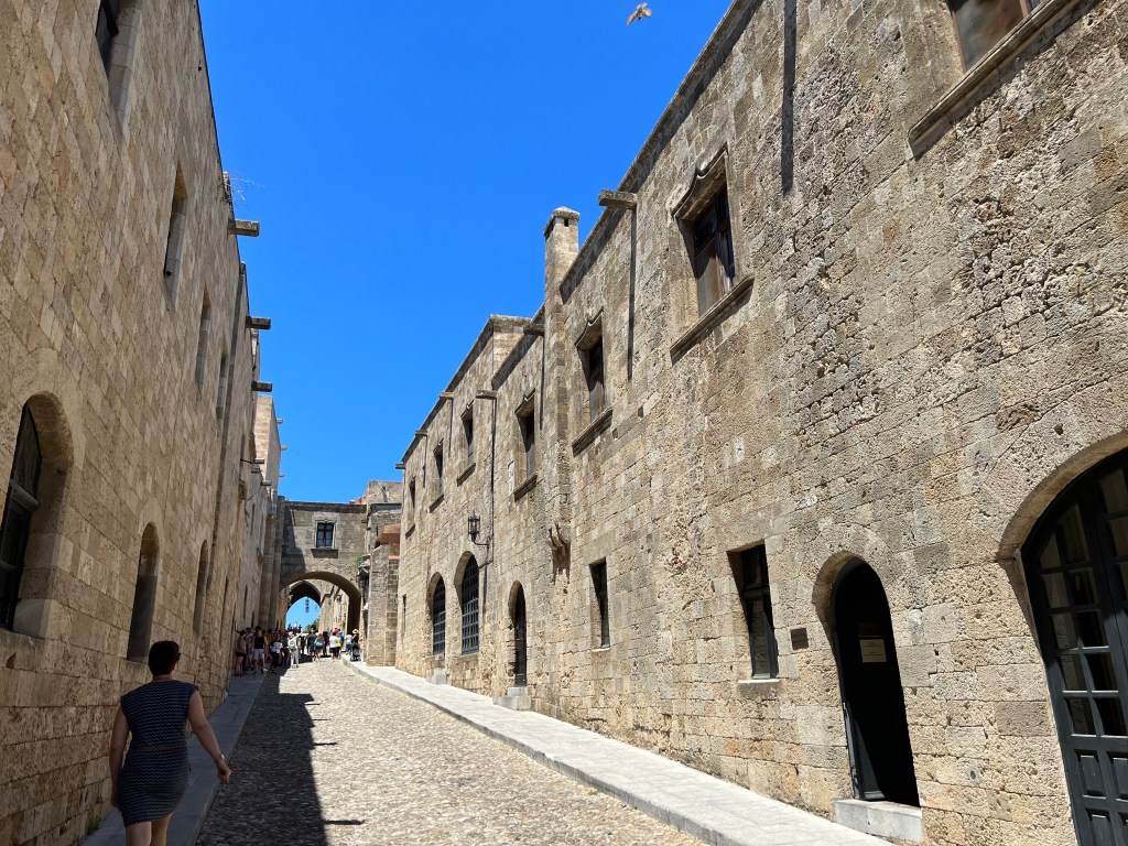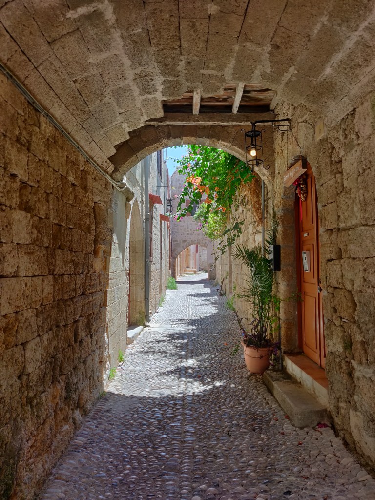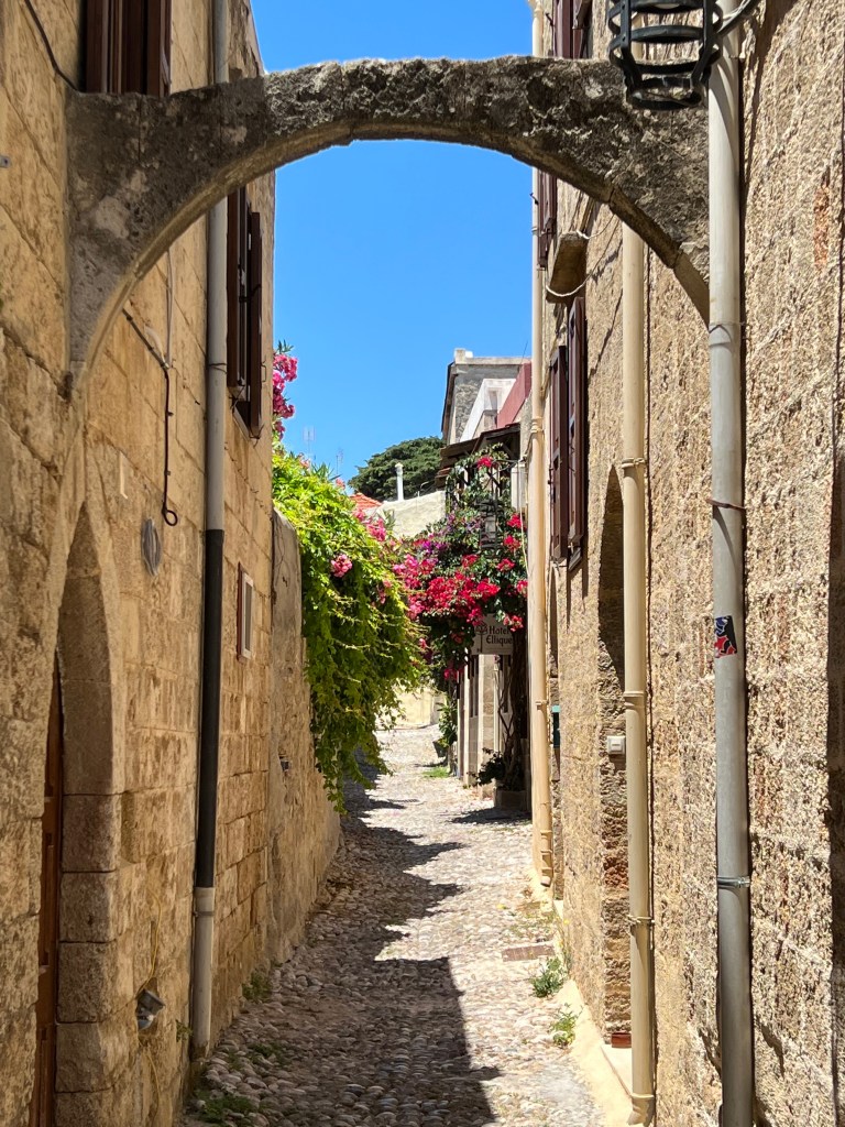 Ródoksen vanhakaupunki on tunnelmallinen kapeine kujineen, ravintoloineen ja puoteineen. Kesällä lämpötilat huitelevat jopa 40 asteen lukemissa, niin tänne varjoisille kujille on mukava tulla viilentymään jääkahvin tai oluen ääreen ja ihmetellä rauhakseen soljuvaa elämänmenoa.