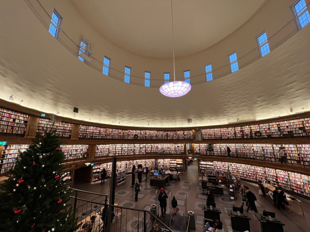 Vuonna 1928 valmistunut Gunnar Asplundin suunnittelema Stadsbiblioteket on yksi Tukholman tunnetuimmista rakennuksista. Sen tunnusmerkki on valtava sylinterimäinen rotunda, jota ympäröivät selkeät kuutiomaiset siivet – tyylikäs yhdistelmä klassismia ja funktionalismin alkua. Sisällä avautuu valoisa tila avohyllyineen, ja ulkopuolella portaat ja puisto tekevät kirjastosta kaupunkikuvallisen maamerkin. Arkkitehtuurin ystävälle ehdoton vierailukohde.