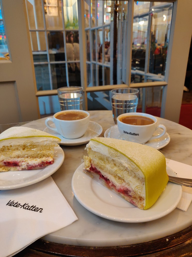 Tukholmaan voi matkustaa pelkästään kahviloiden takia. Niitä on paljon ja niissä tarjoillaan toinen toistaan herkullisempia leivonnaksia. Vete-Kattenin perusti vuonna 1928 määrätietoinen nainen nimeltä Ester Nordhammar. Tuolloin harvaa yritystä johti nainen ja leipomoita vielä harvemmin. 42-vuotiaalla Esterillä oli paljon työkokemusta, mutta hän oli tuskin astunut jalallaan leipomoon. Hänen ajatuksenaan oli perustaa yksinkertainen leipomo, johon kaikki olisivat tervetulleita, joka olisi ”sisustettu kuin papin koti” ja jossa tarjolla olisi korkealaatuisia leivonnaisia, leipiä ja pullia. Ja sitten oli vielä se juttu, joka liittyi nimeen. Miksi leipomoa kutsutaan Vete-Katteniksi? Kerrotaan, että nimi syntyi, kun Esteriltä kysyttiin, mikä hänen leipomonsa nimi pitäisi olla, ja hän vastasi: ”Ja, det vete katten” eli ”vehnäkissa”. Ketju on laajentunut ja kahviloita löytyy ympäri keskustaa.